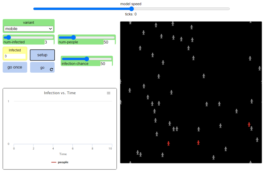 In this module, you will be asked to consider the factors that impact the spread of disease and to learn different ways of creating simple simulations that can be used to describe the rates at which disease spreads. This is no way meant to be comprehensive nor a full guide about epidemiology, but the activities and patterns you will follow about learning about new spread factors, tinkering with their values, and attempting to explain how and what you observe will give you all a better sense about how to understand the complexities of making large scale decisions about public health and safety when it comes to pathogens and viruses.
